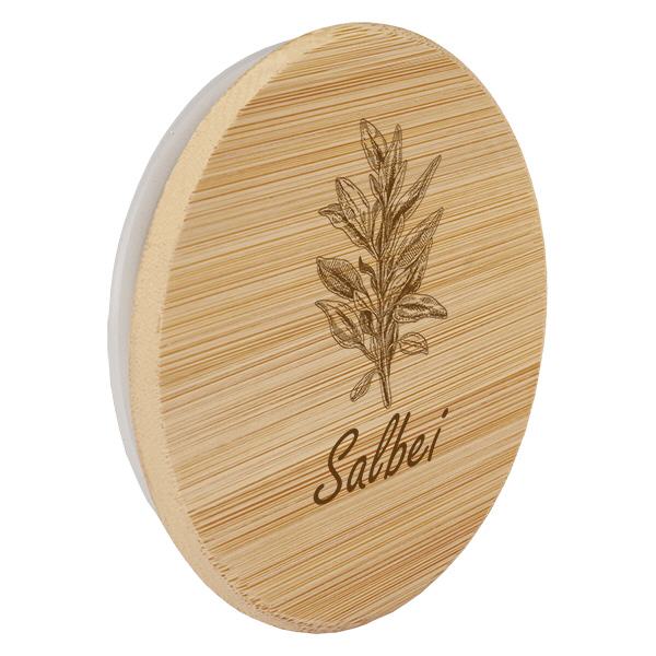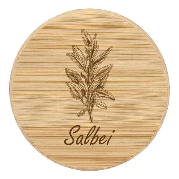 - Aufdruck: Brauner Schriftzug und Bild "Salbei"
