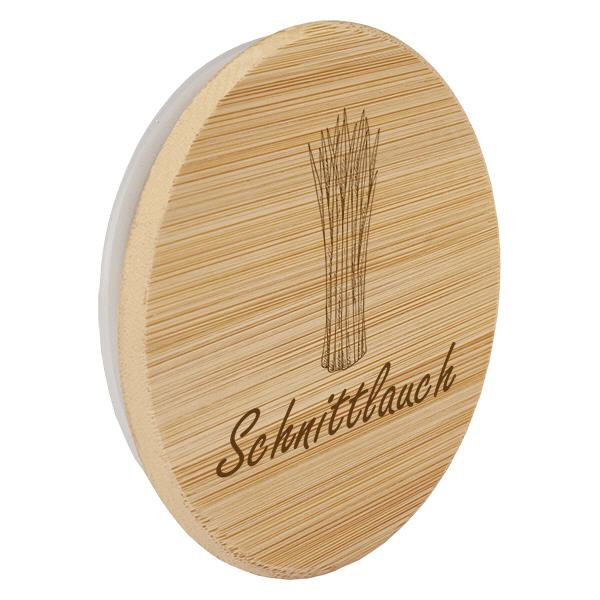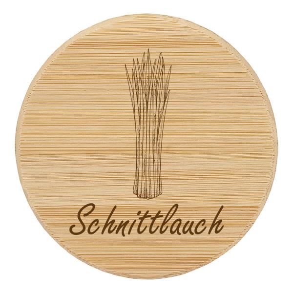 - Aufdruck: Brauner Schriftzug und Bild "Schnittlauch"